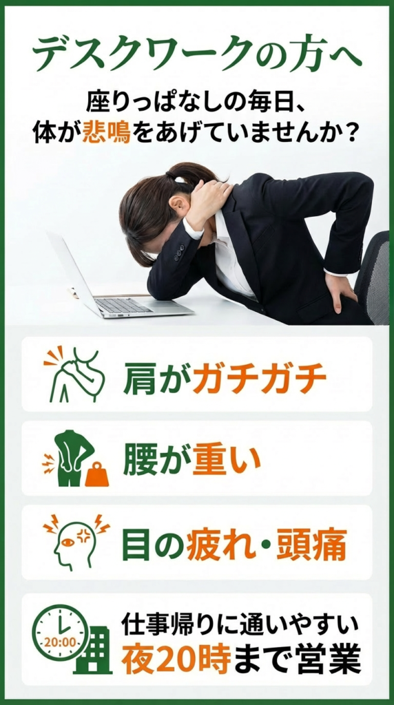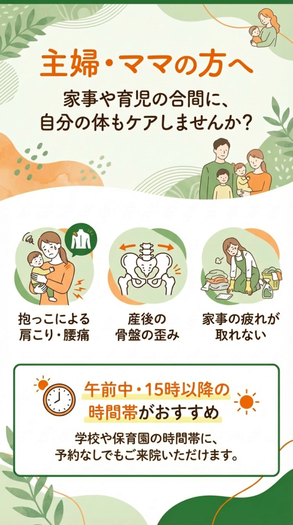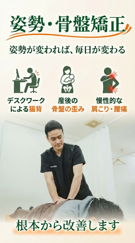 肩こり・腰痛などの身体の不調に丁寧に対応する整骨院です。