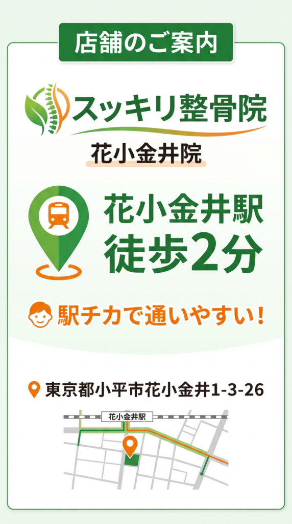 花小金井駅徒歩2分|スッキリ整骨院 花小金井院|肩こり・腰痛対応